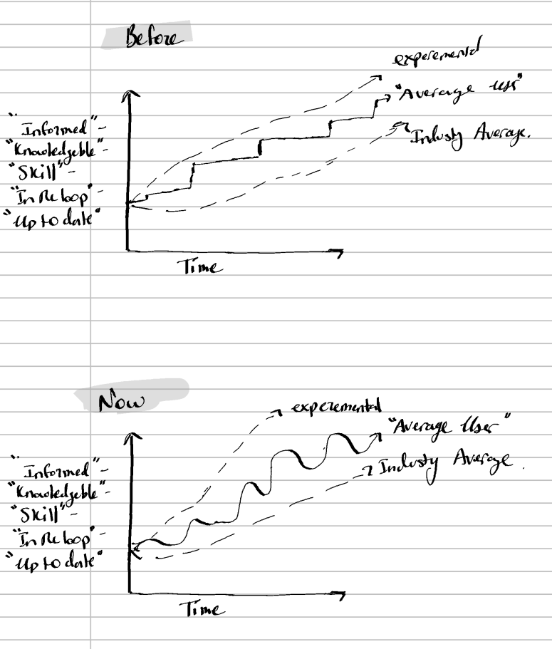 Before I close my article, I did want to add some remarks on how these AI generative technologies have been integrated into my workspace and my feelings about them. First, I want to say agentic coding agents, especially in the last couple of months, are extremely revolutionary, they allow me to do so much more and find a lot of my mistakes in my production and sometimes in real time. It has been extremely helpful and has saved me hours of time. You may assume that, since it saves me hours of work, I may be working less. However, the more I rely on these tools, the longer my workday gets. The coding agents are a huge enabler of touching more parts of my project at the same time, meaning as I become better, I'm doing bigger parts of the project in a shorter time, and usually leading me to have longer days to get those parts across the finish line, only to restart the next day. So, as to the perfect metaphor, the coding agents have become a sort of double-edged sword. The other notion is that the field is progressing extremely fast. The number of papers I have to constantly follow to understand newfound limitations of current implementation of generative AI, or better methods to use it, is constantly growing, not to mention the bombardment of constant new tools, tips and tricks to get better at using current offerings. At times, it can be overwhelming, but it's a constant balancing act between being behind and being informed. I think many are burned out, and we are starting to see a wave-like progression in informed users (better to say, up-to-date users). What do I mean? Well, for lack of a better way to explain it, I think the pattern of individual developers and users of these platforms is: The general user of generative AI technologies is informed on a wave with peaks and troughs of being in the loop vs before. I felt the pattern resembled a wave, where you ride it up (your catching up to status quo) and down (to much information comes out and you fall behind).